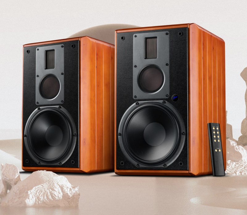 惠威M5A最大的亮点在于它虽是一个书架式有源音箱却使用了落地箱常见的三分频设计,而且搭载上8英寸大口径低音单元的它在低频方面的表现力和震撼力更加出众,让我们轻松拥有澎湃的听感。同时,配合上一颗75mm金属中音单元和等磁场带式高音单元,也使得中高频方面细节也更加丰富,确保了人声和音乐真实还原,为我们营造出细腻、清晰自然的音效。